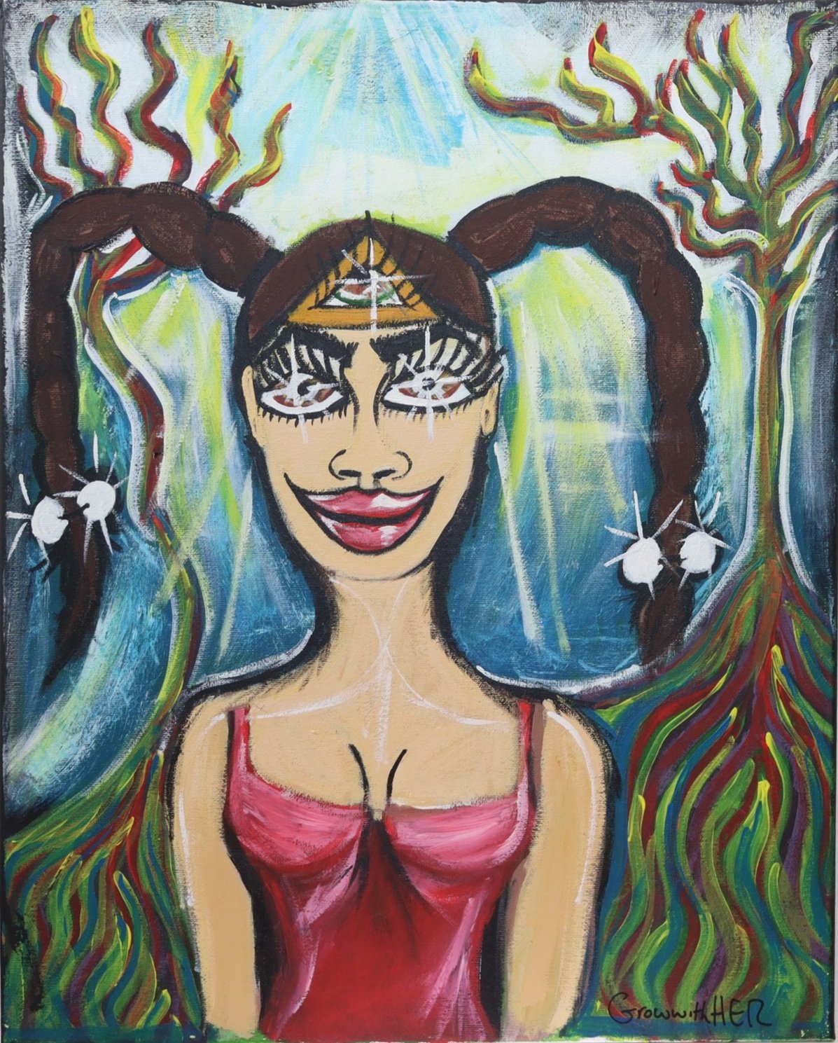 In this self-portrait, the artist delves into a mystical exploration of the inner self, intertwining the enchanted projection of the self with profound self-awareness.