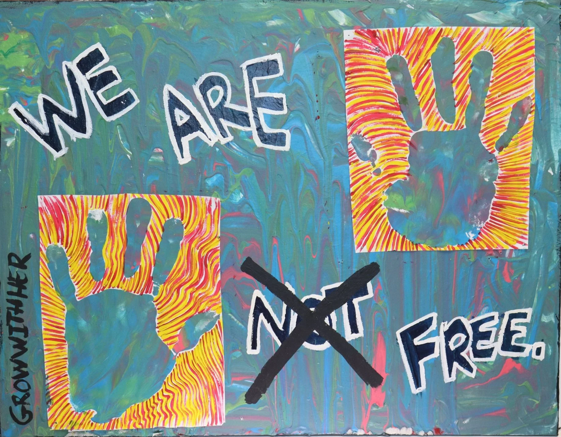 Through the evocative symbolism of the hands, the artist prompts viewers to contemplate the profound and enduring quest for genuine freedom amidst the pervasive forces of constraint and subjugation.